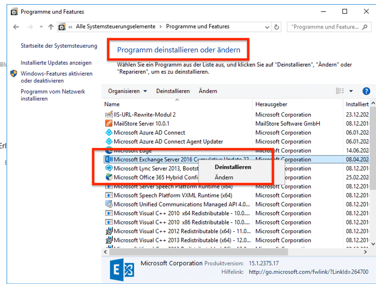 Der alte OnPrem-Exchange-Server ist dann natürlich überflüssig. Prinzipiell kann man den Exchange dann aber nicht über den Server-Manager, sondern über Programme und Features deinstallieren: